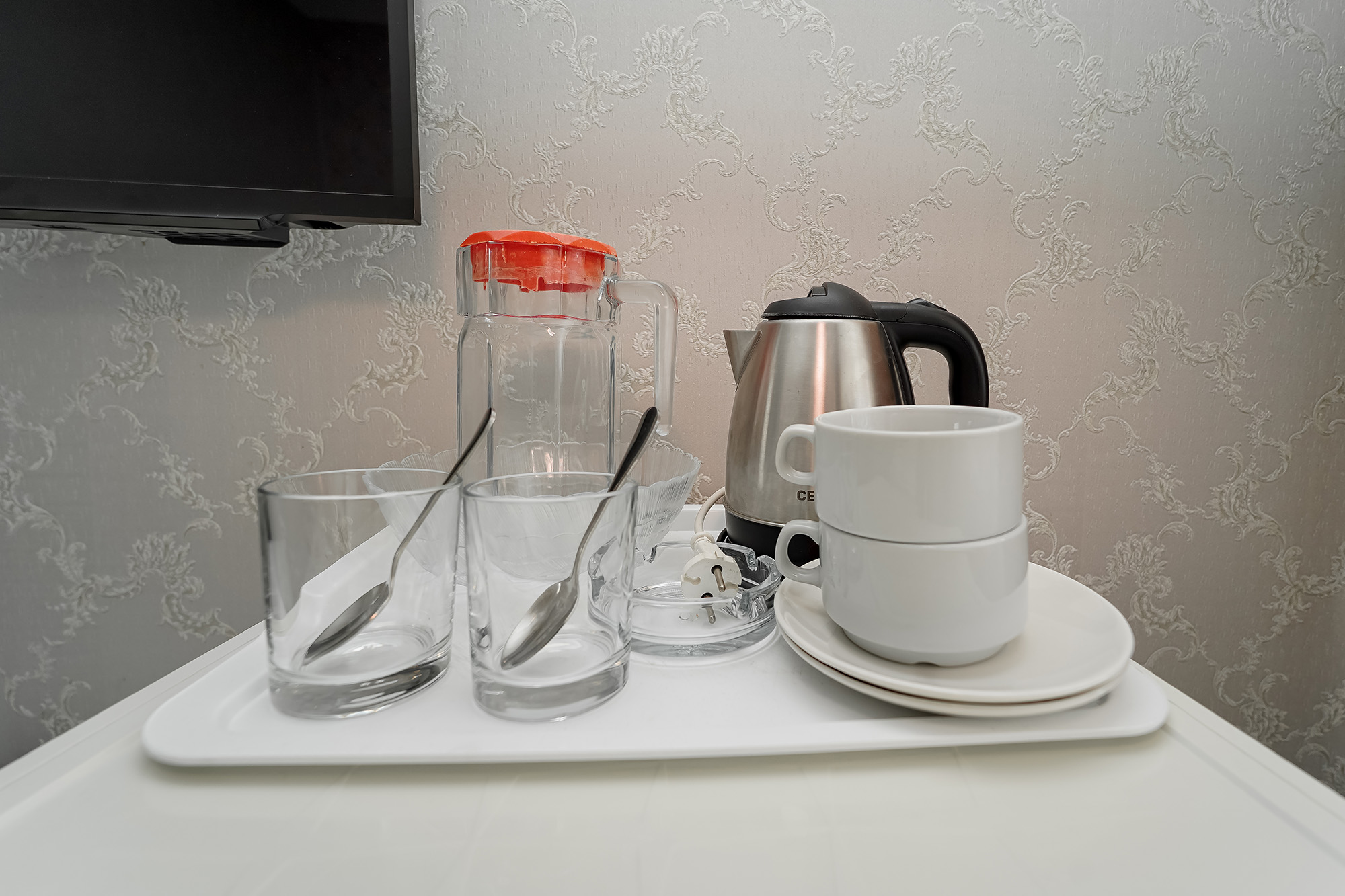- Оборудование: мини-холодильник, сейф, сплит-система, телевизор ЖК, утюг, чайный набор посуды, электрочайник
