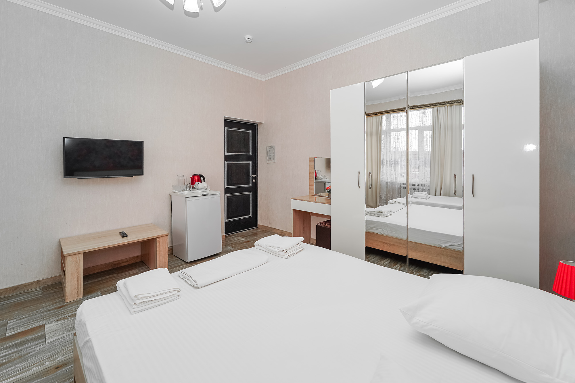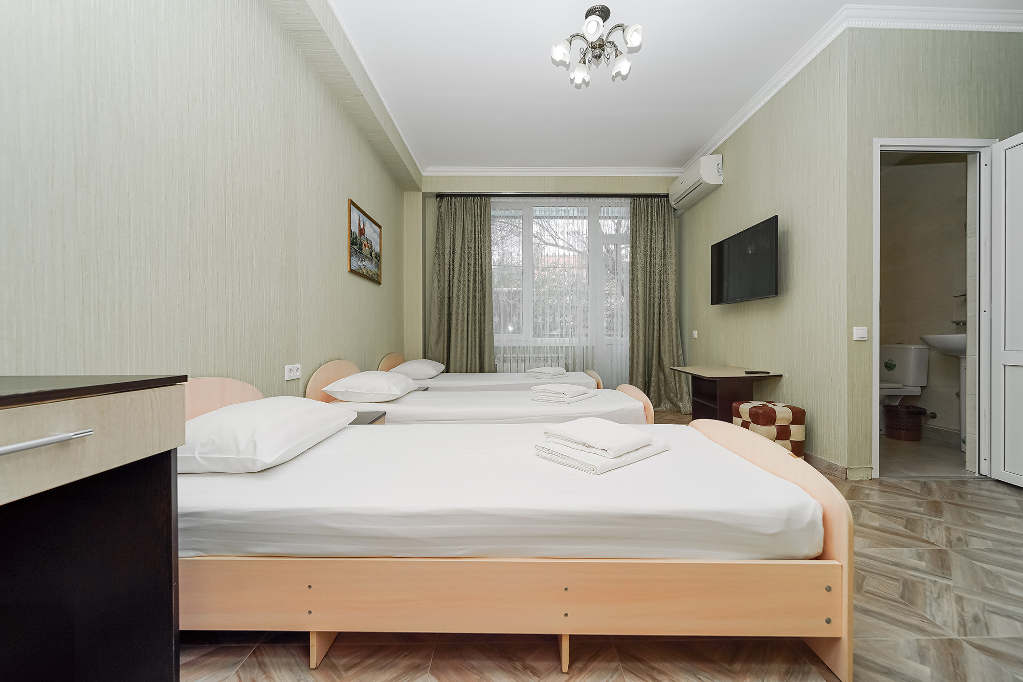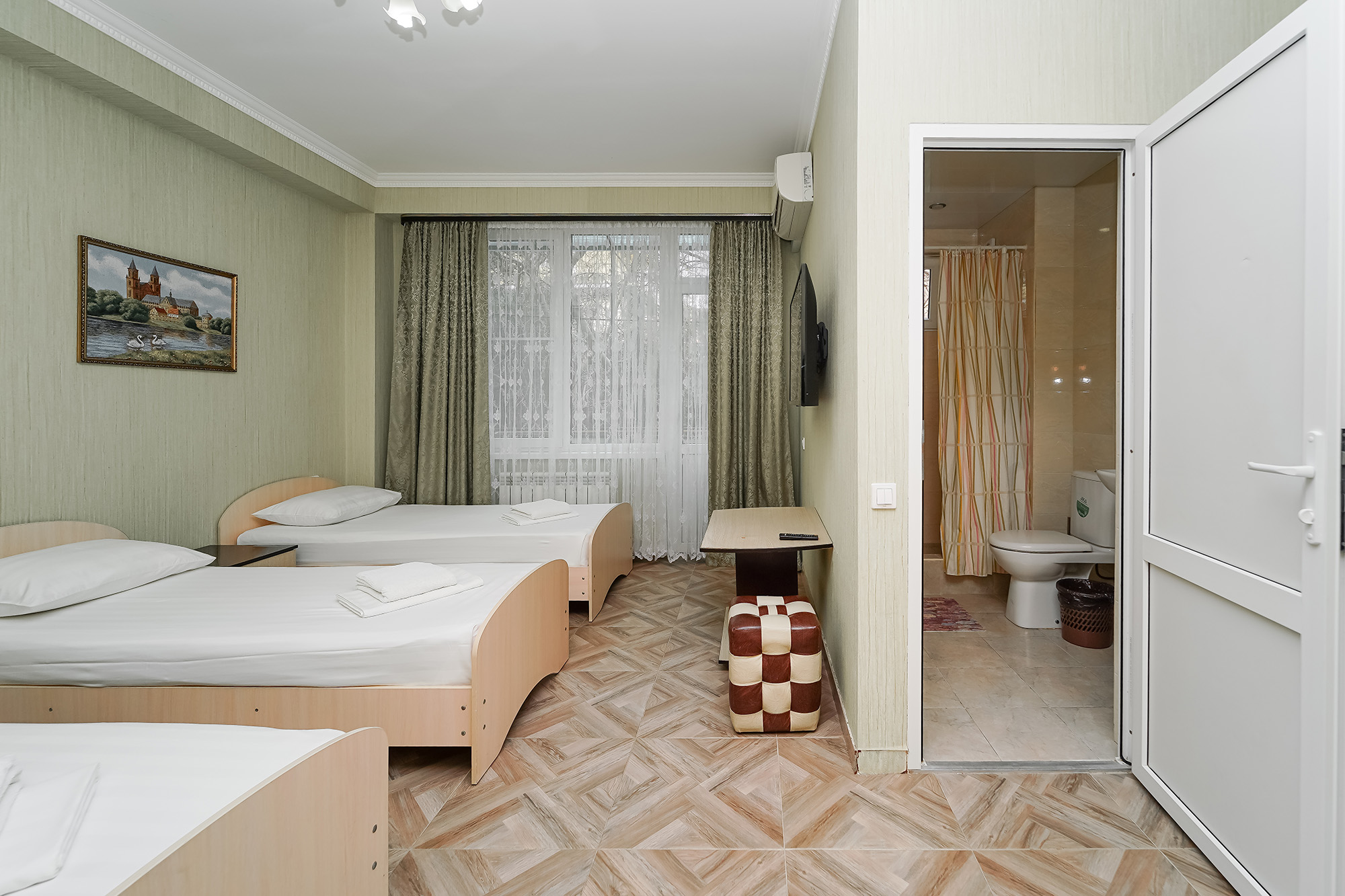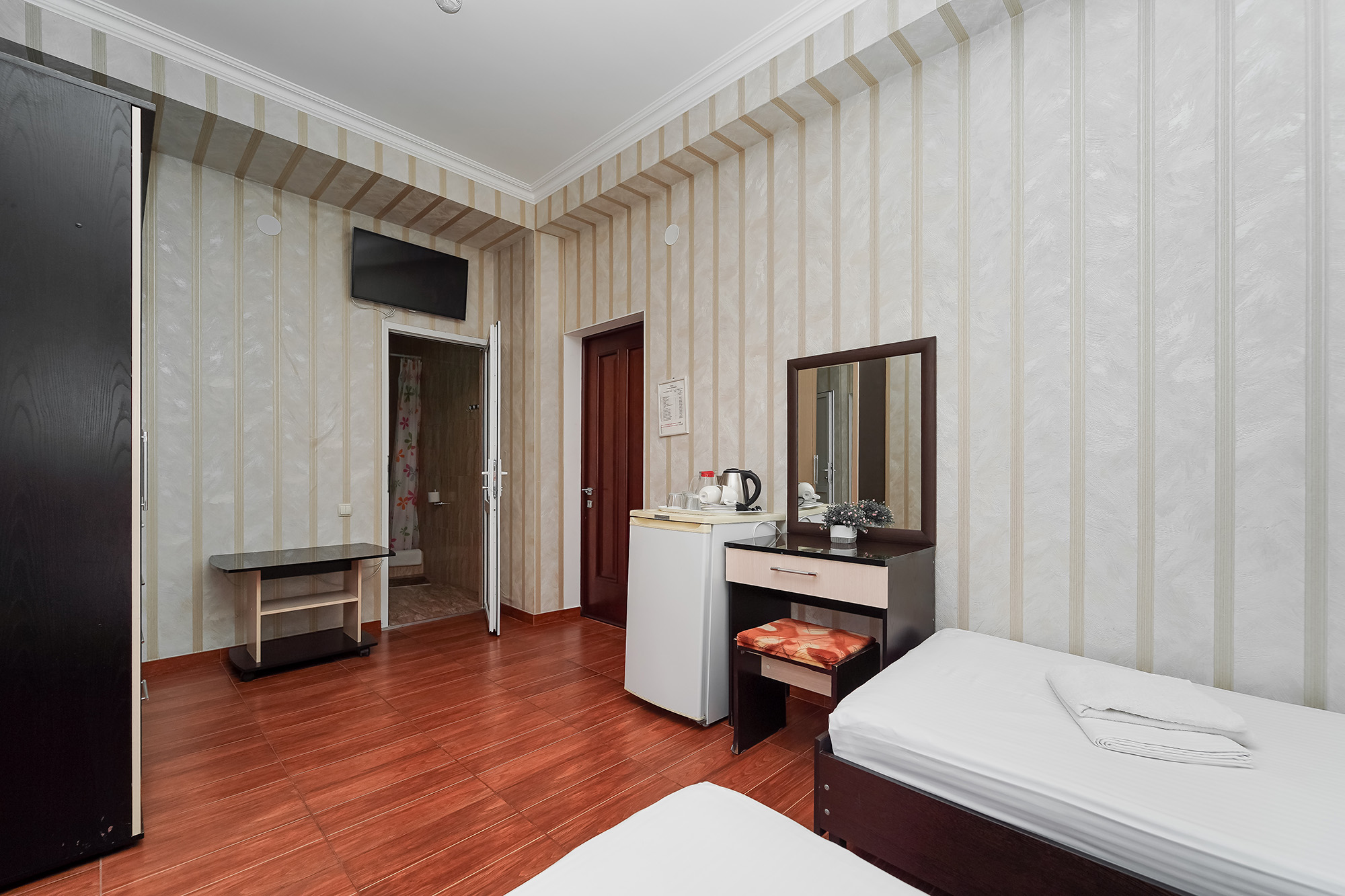- Сервис: Wi-Fi бесплатно, смена полотенец, смена постельного белья, уборка номера