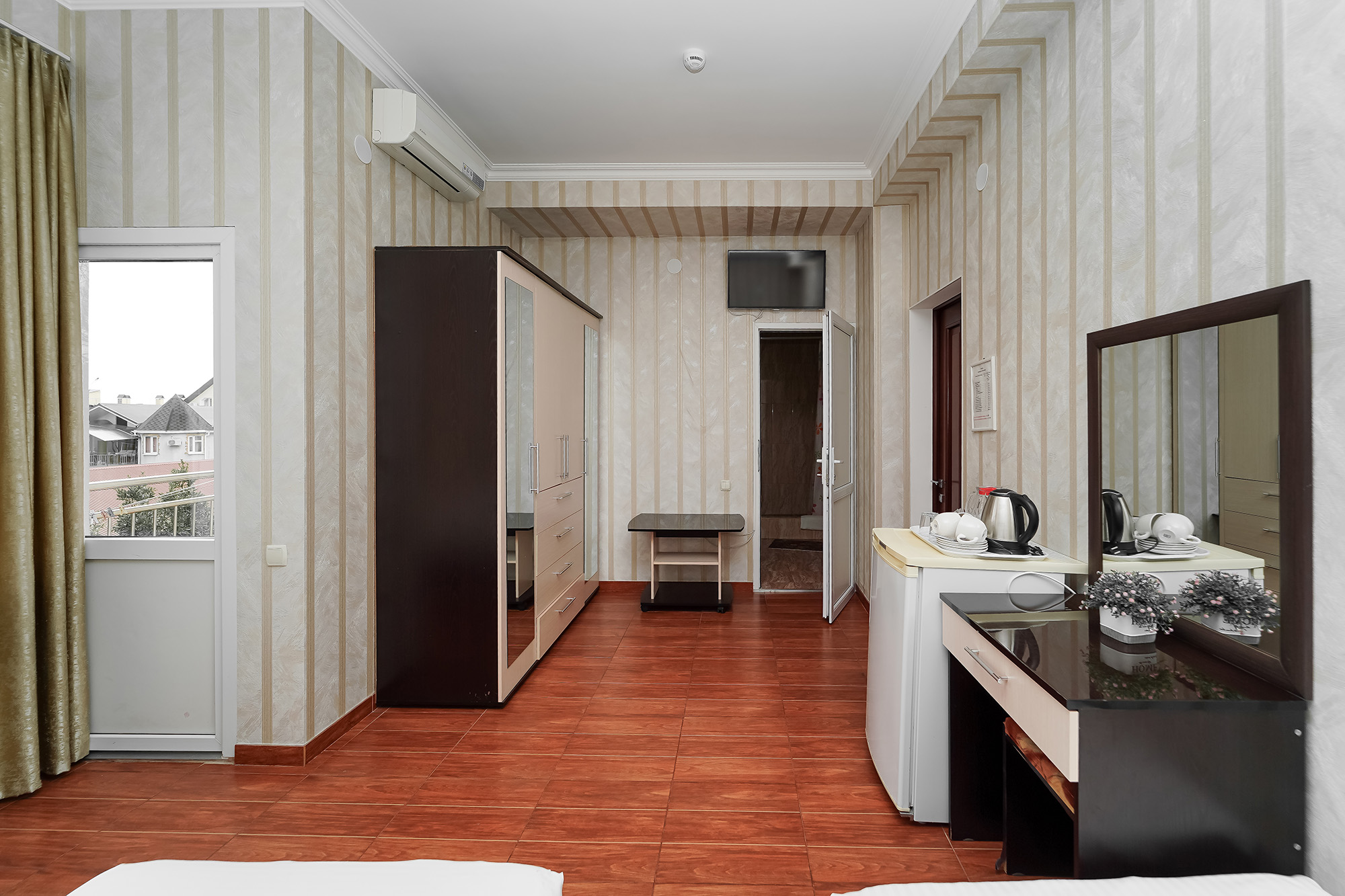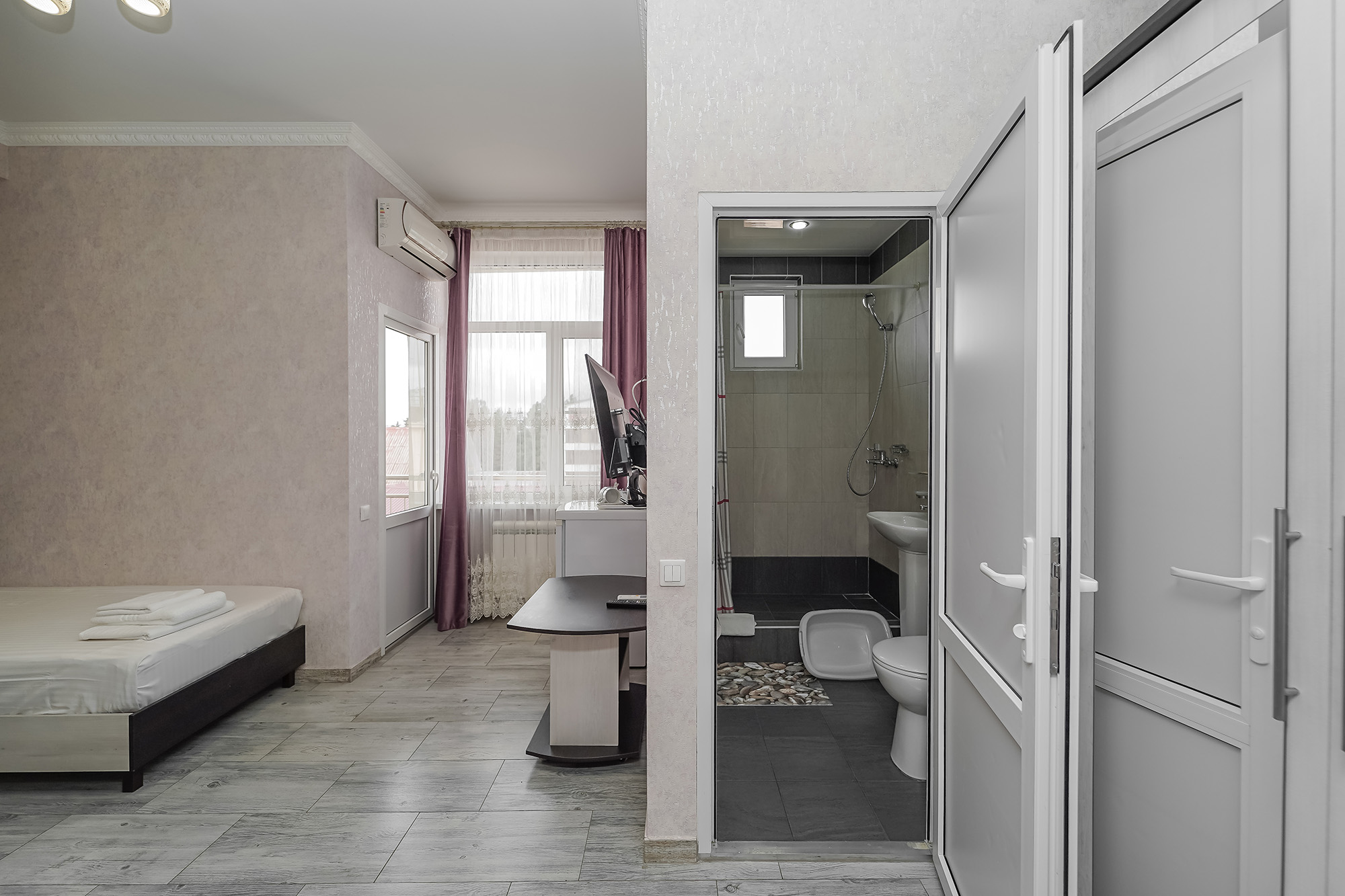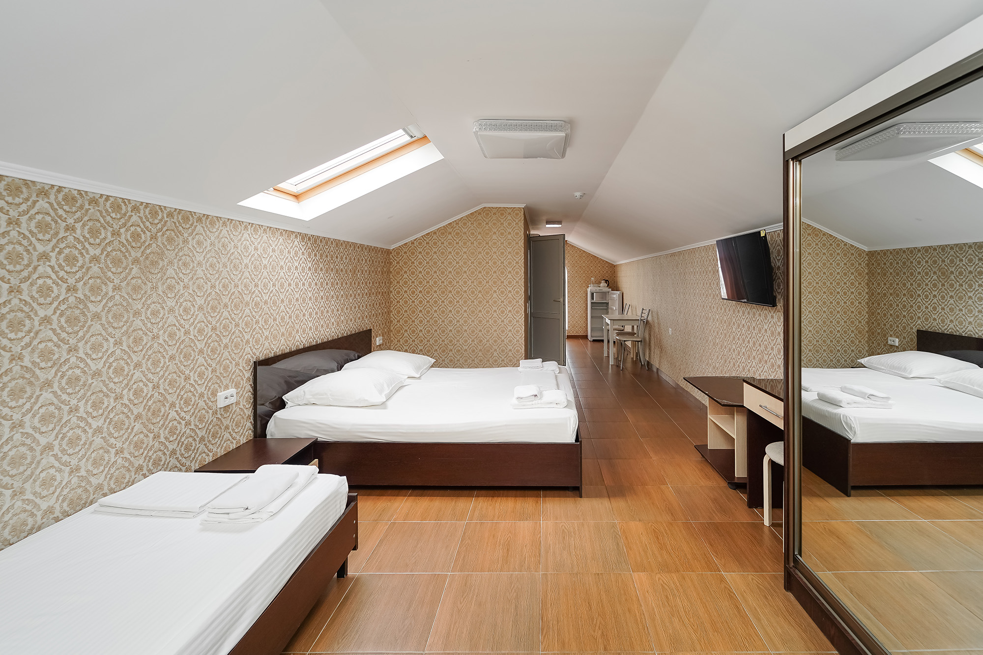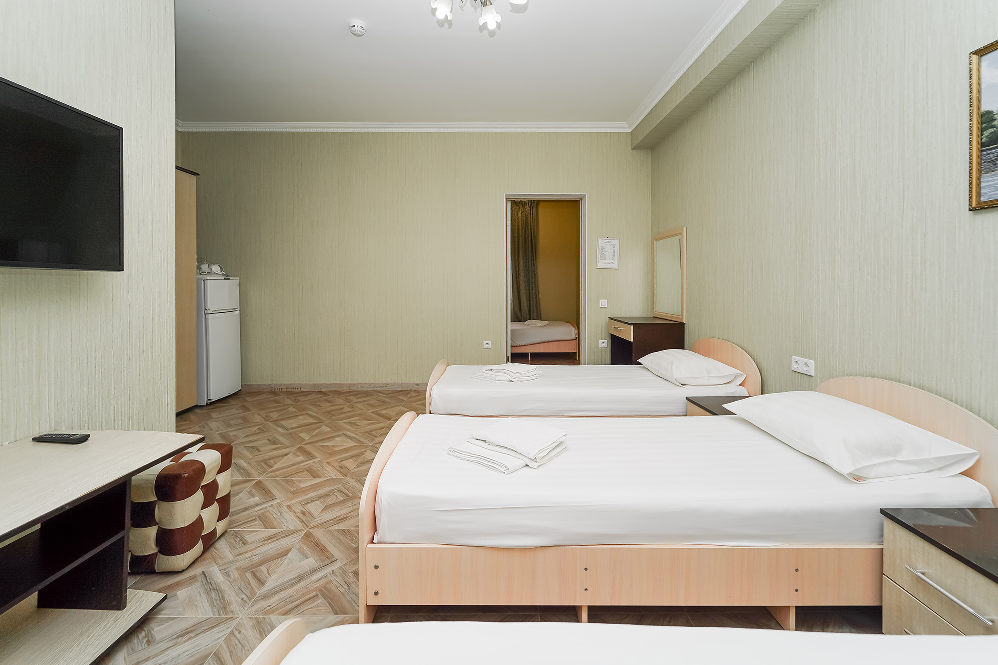 - Сервис: Wi-Fi бесплатно, смена полотенец, смена постельного белья, уборка номера