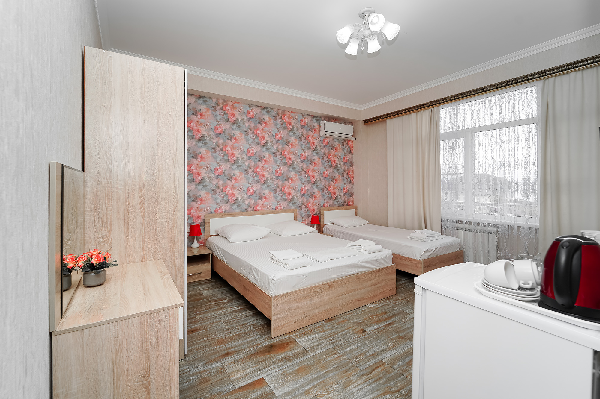 | Стандарт 4-местный с раздельными кроватями | 30 кв.м. | 4 чел. | Балкон (с мебелью и сушилкой), Мебель (вешалка, зеркало, кровати односпальные, прикроватные тумбочки... |