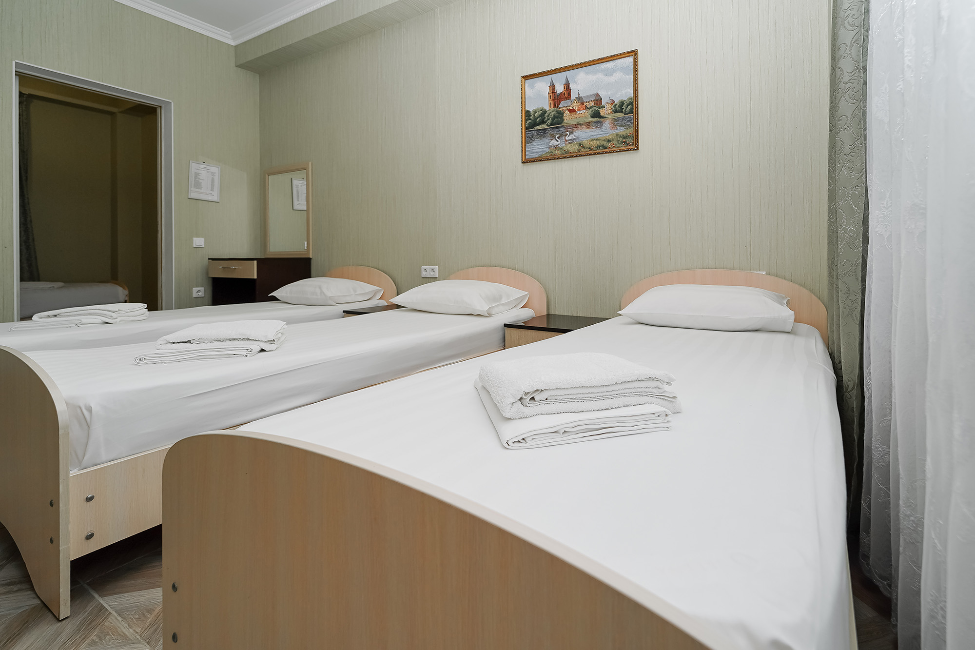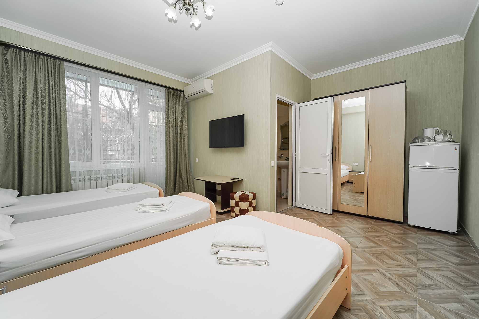 | Стандарт Стандарт 3-местный с раздельными кроватями | 26 кв.м. | 3 чел. | Балкон (с мебелью и сушилкой), Мебель (вешалка, зеркало, кровати односпальные, прикроватные тумбочки... | |
